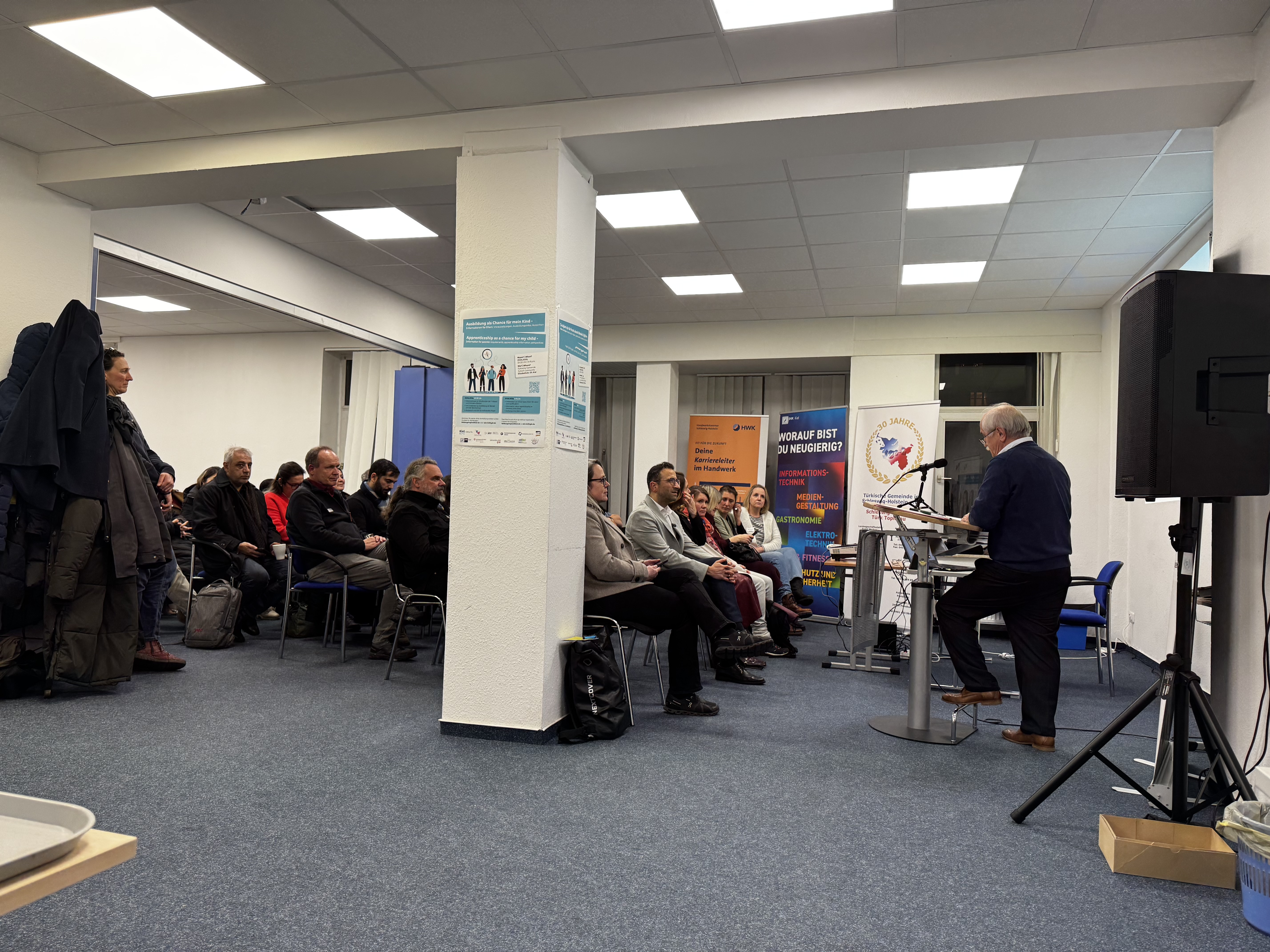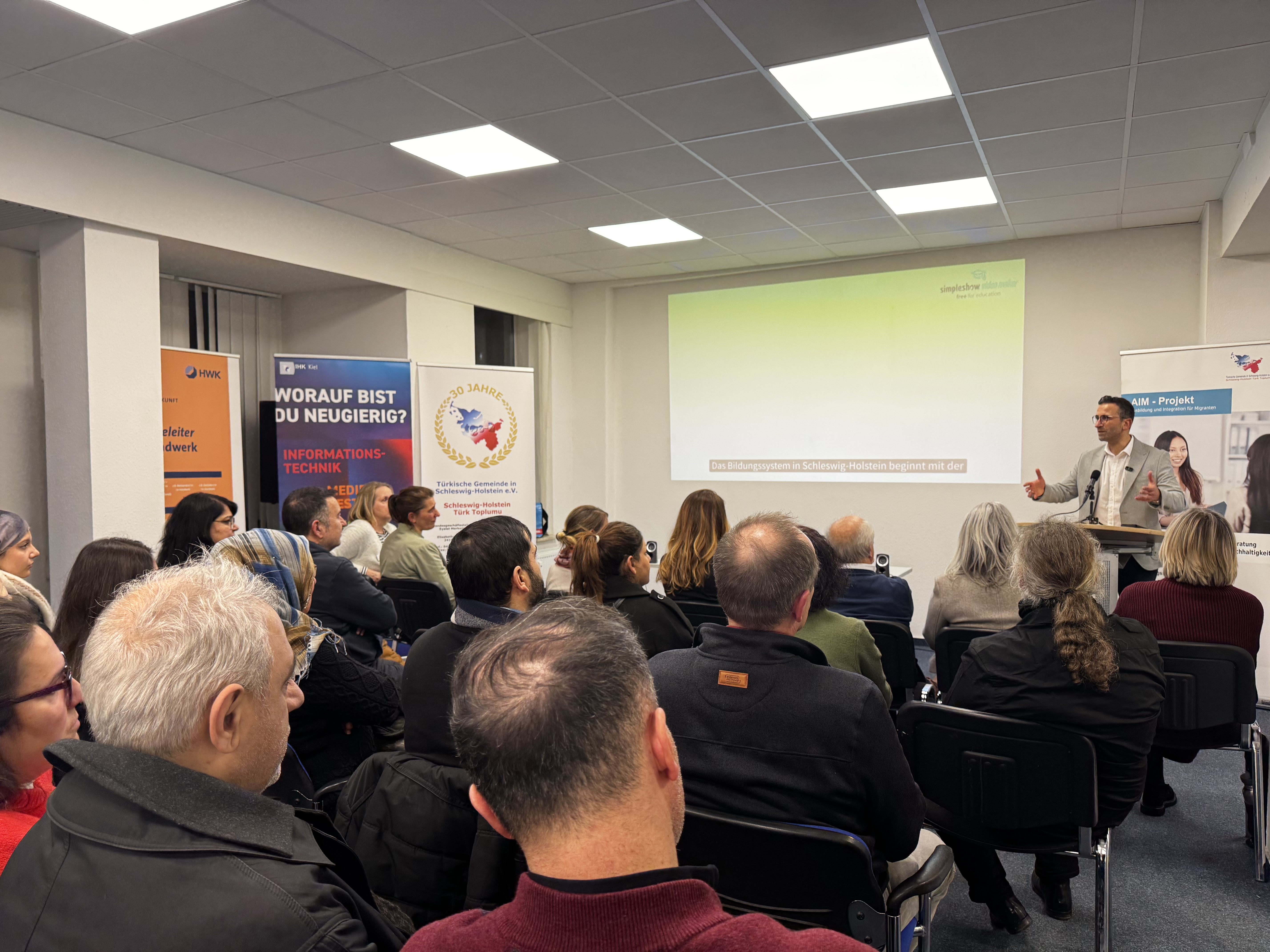 „Bildung ist mehr als nur Unterricht und Noten. Sie eröffnet Chancen, öffnet Perspektiven und legt den Grundstein für die Zukunft unserer Kinder!“ So eröffnete der Landesvorsitzende der Türkischen Gemeinde in Schleswig-Holstein e.V., Herr Dr. Cebel Küçükkaraca, die Veranstaltung „Ausbildung als Chance für mein Kind“ am 29.01.2026.Im Rahmen einer großen Kooperation mit der Stadt Kiel, dem Schulamt, der IHK Kiel, der Handwerkskammer Lübeck, der Kreishandwerkschaft Kiel, der Bundesagentur für Arbeit, dem Jobcenter Kiel und den vier RBZ-Schulen in Kiel konnten Eltern und ihre jugendlichen Kinder wertvolle Informationen über das deutsche Bildungssystem, den Schulformen ab der 5. Klasse und den verschiedenen Schulabschlüssen sowohl als anschauliche Präsentationen als auch in Vorträgen genießen. Des Weiteren wurde auch über die Ausbildung im Betrieb und in der Berufsschule informiert. Bei Bedarf gab es die Möglichkeit der Übersetzung ins Türkische, Arabische, Russische und Englische. Nach einer Verköstigung wurde der Abend sodann mit der Möglichkeit zum direkten Austausch über individuelle Fragen mit den Ansprechpersonen abgerundet.